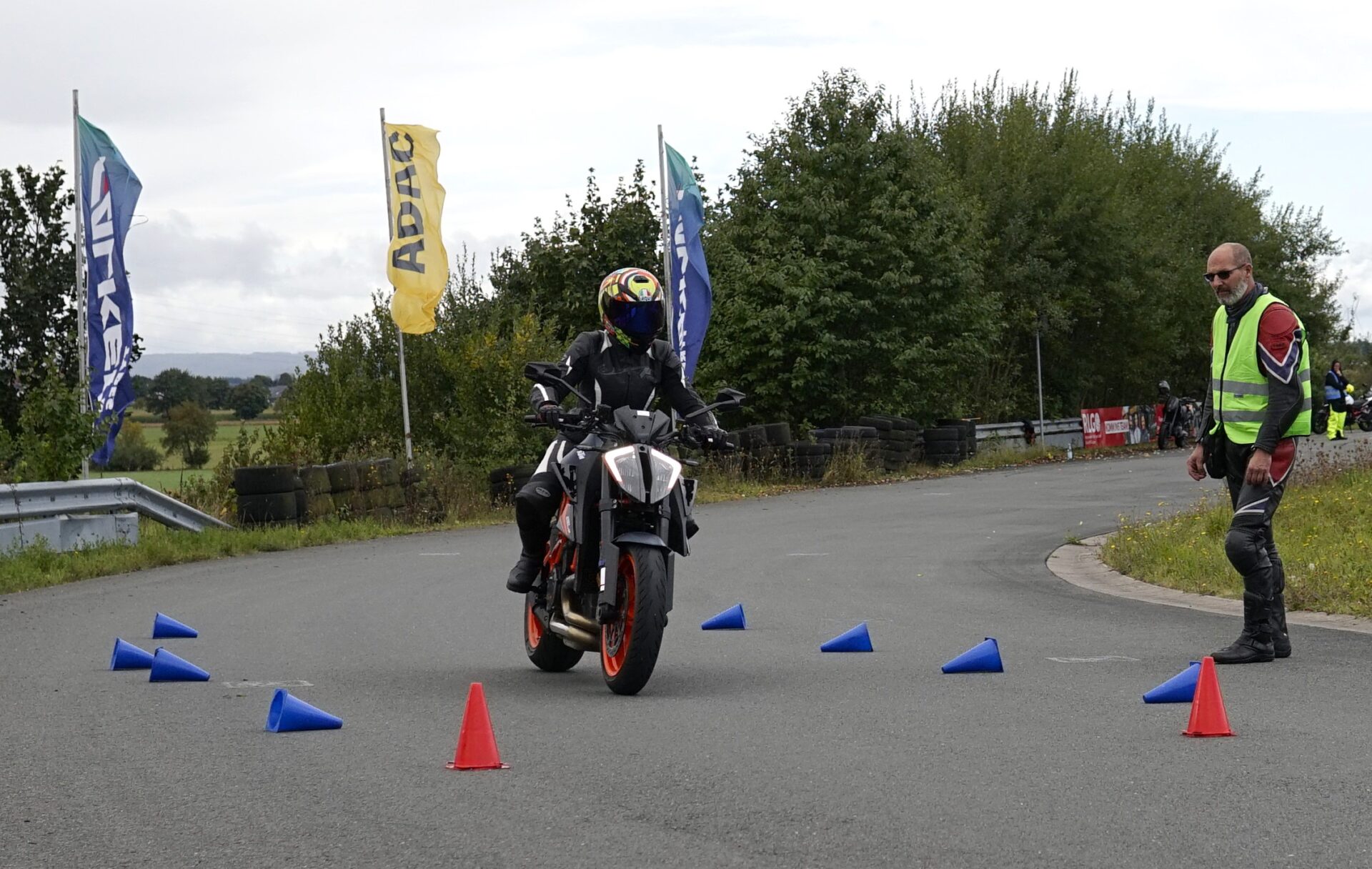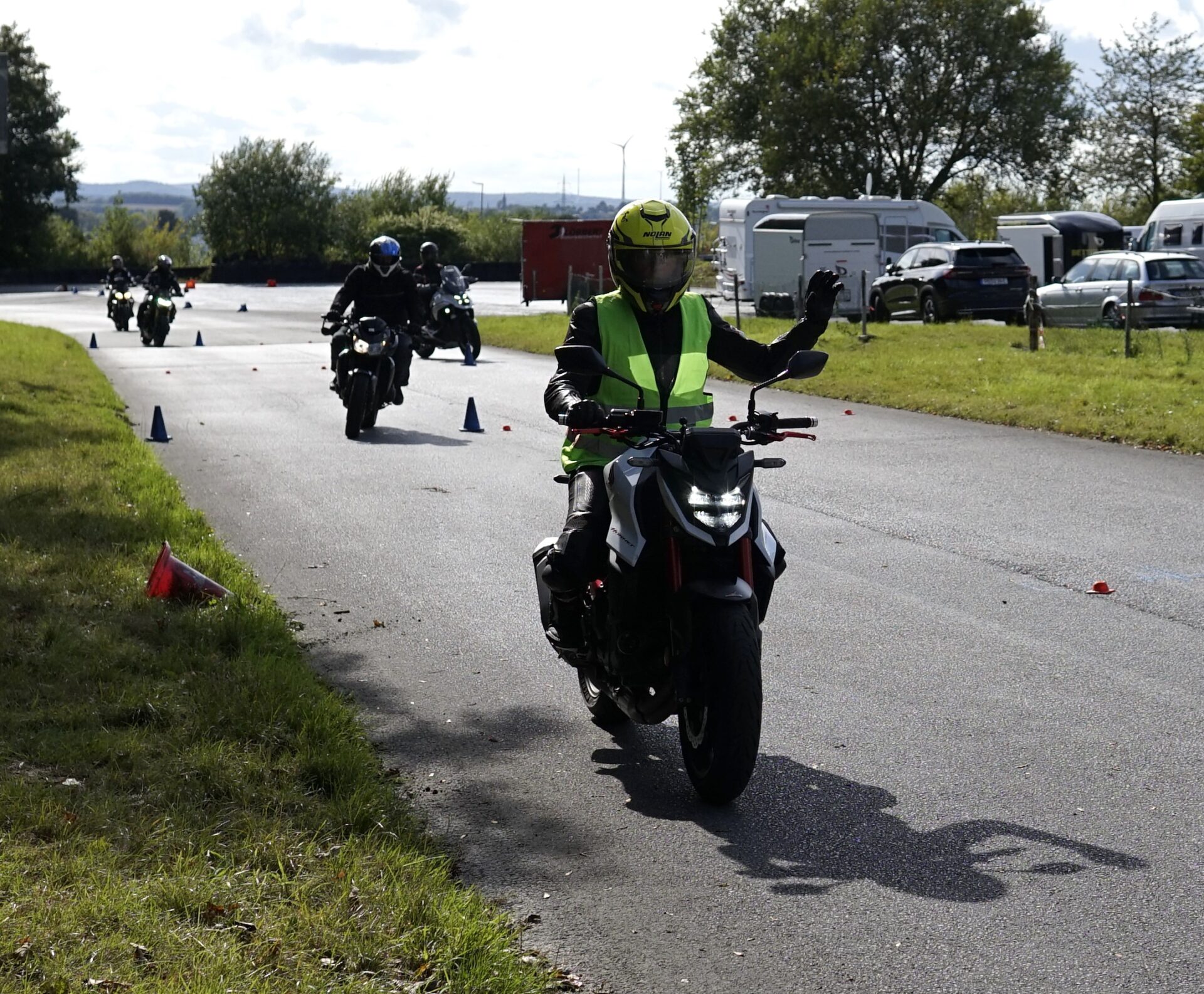 Ob im Kurvenparcours, bei der Herleitung fahrdynamischer Grundprinzipien oder in den Kleingruppen auf der Strecke – die Teilnehmer meisterten Gefahrensituationen, optimierten ihre Fahrweise und wagten sich sicher und souverän an Kurven und Kehren.