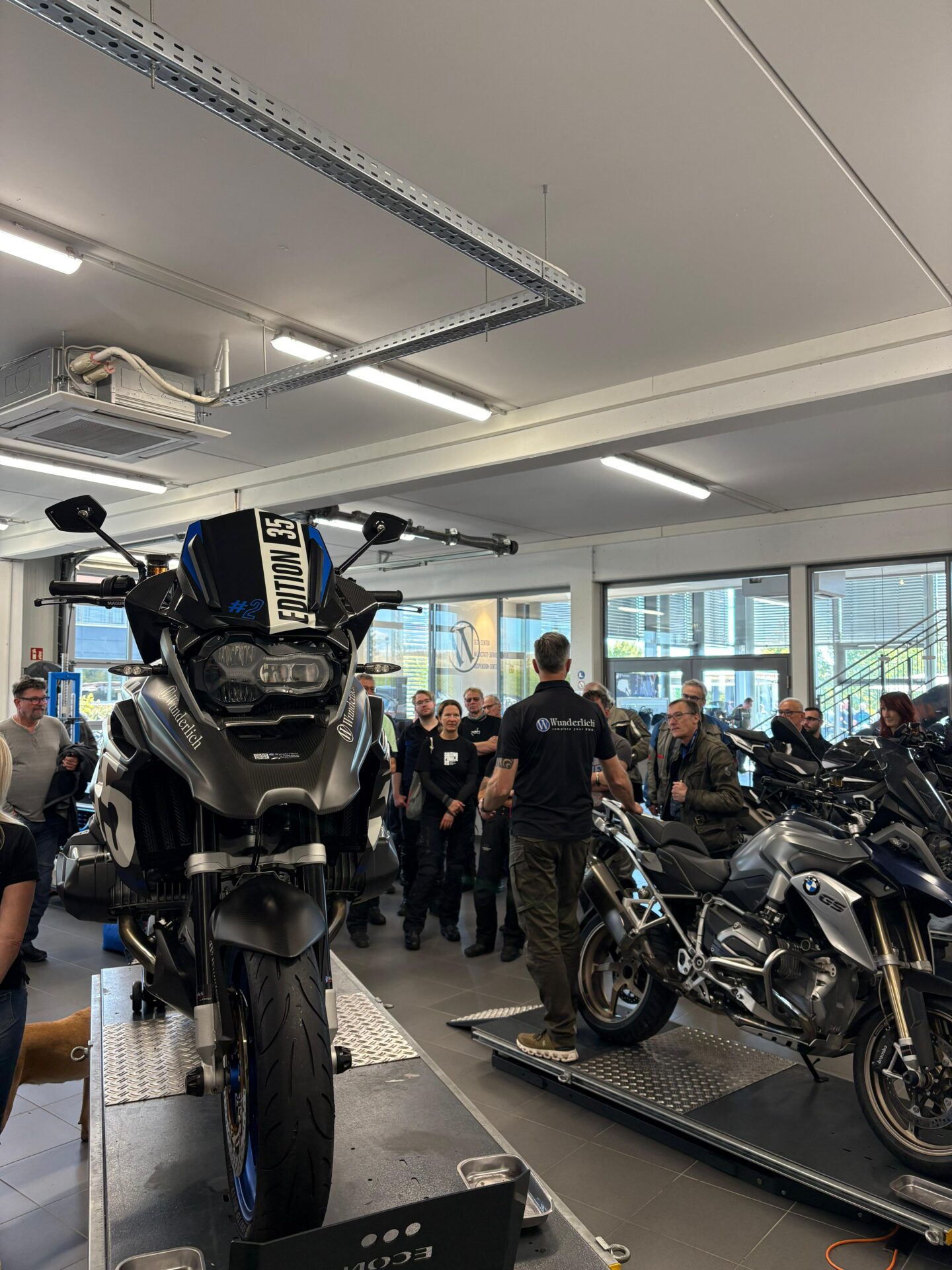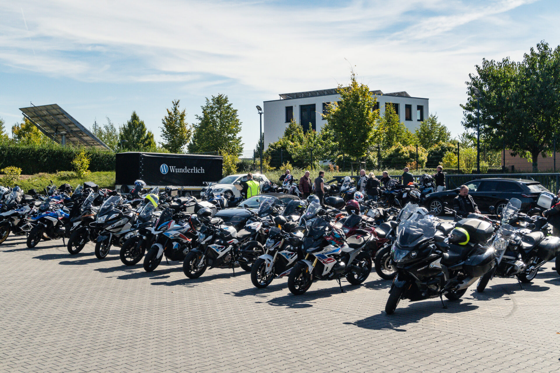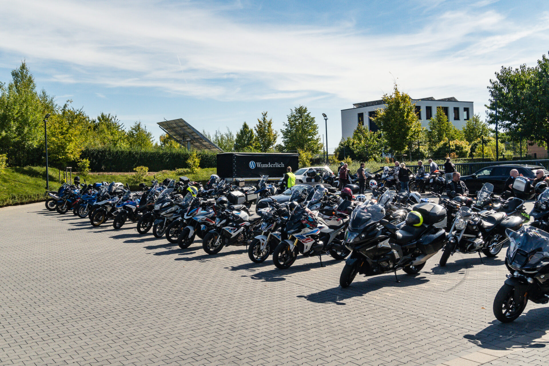 Am Ziel in Grafschaft-Ringen angekommen, warteten schon die ersten Highlights: leckere Stärkung am Imbisswagen, kalte Getränke und viele gute Gespräche. Der Showroom lud zum Entdecken ein, während zahlreiche Custom-Bikes echte Hingucker waren. Dazu gab es exklusiv für alle Teilnehmer 10 % Rabatt – eine Gelegenheit, die der ein oder andere gerne nutzte. Besonders spannend: die persönliche Führung von Wunderlich-Geschäftsführer Frank Hoffmann, der Einblicke in Werkstatt, Entwicklung, Prüfstand und Logistik gab.