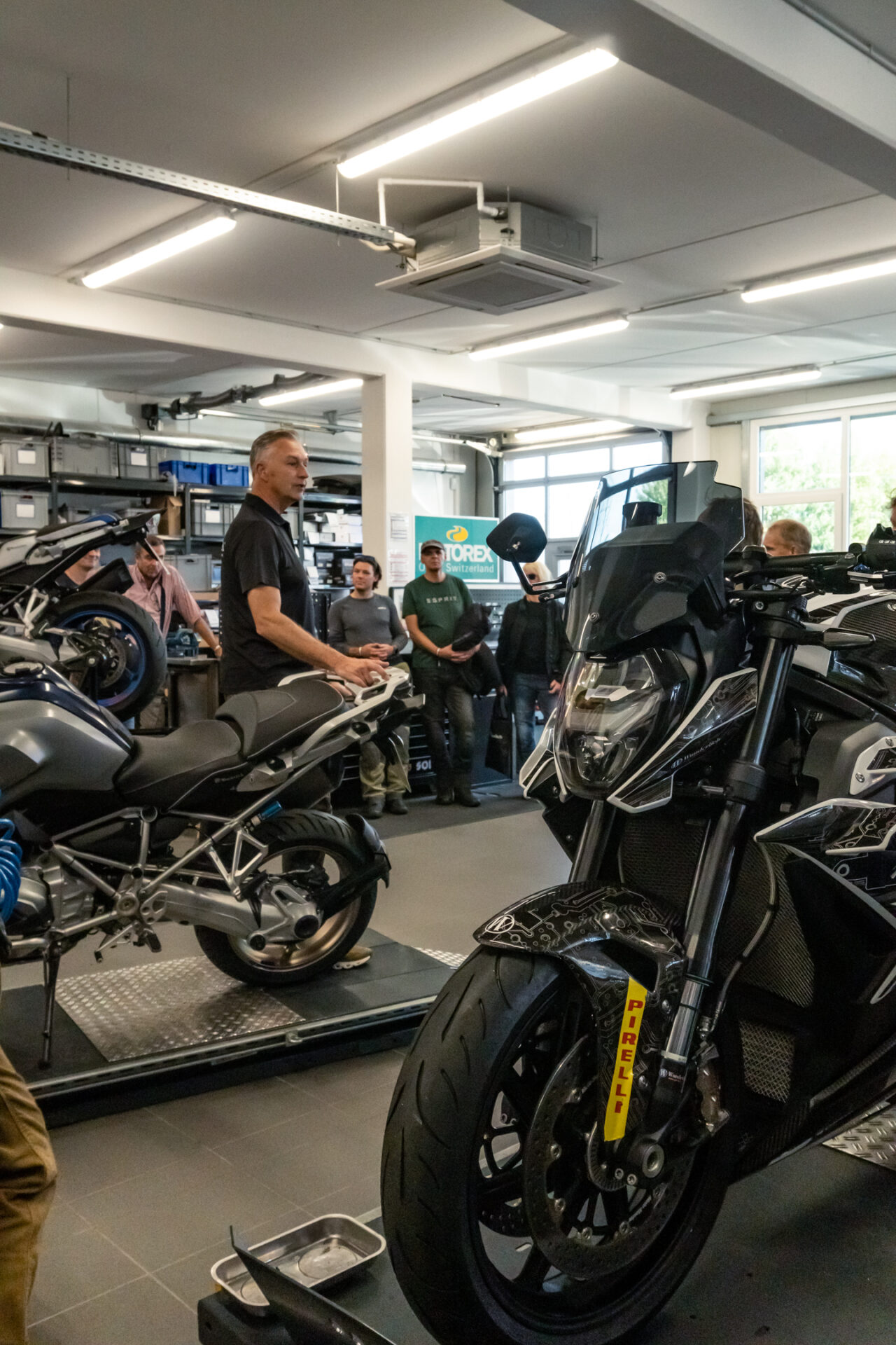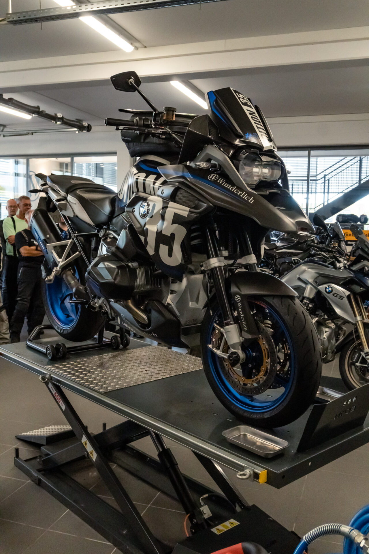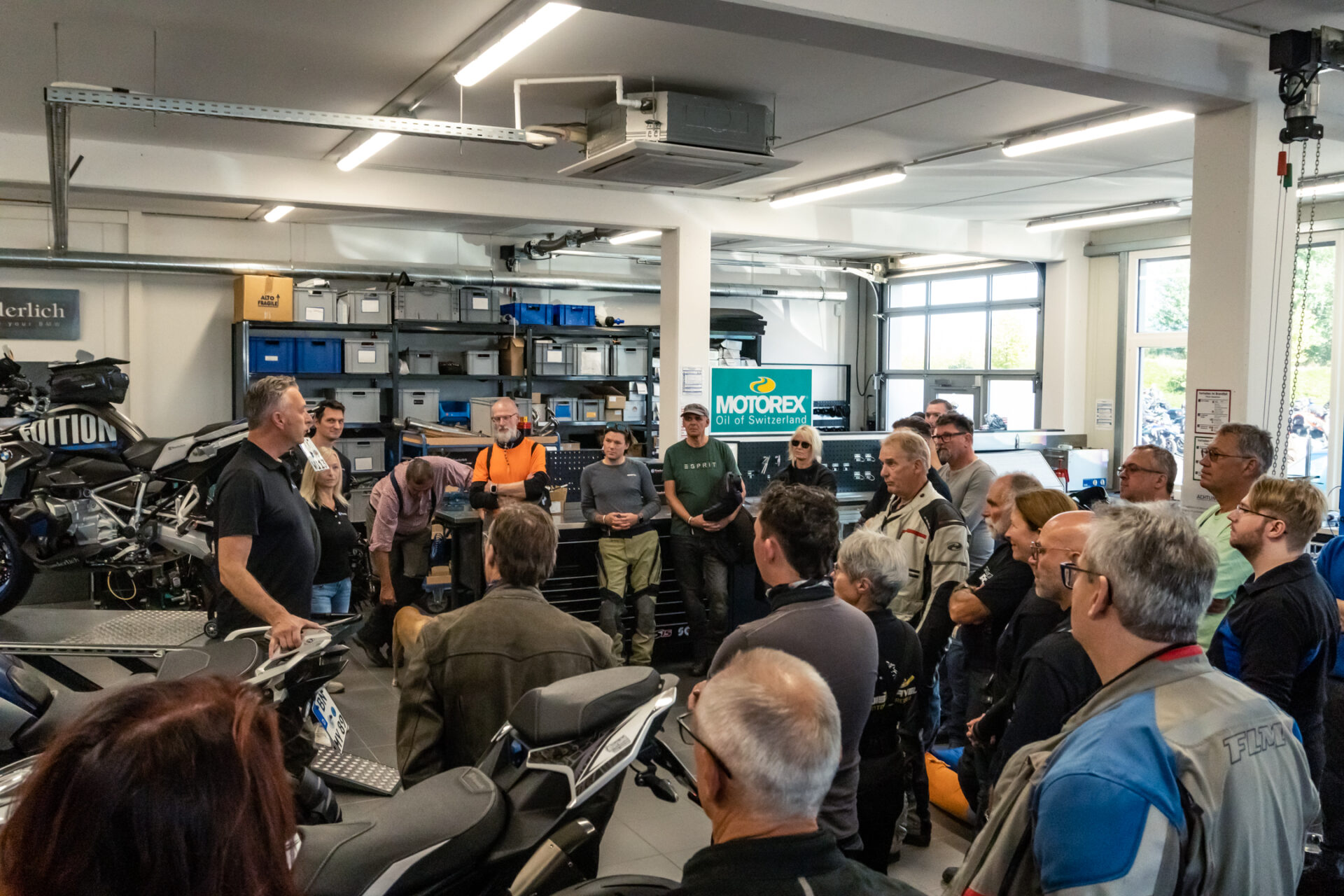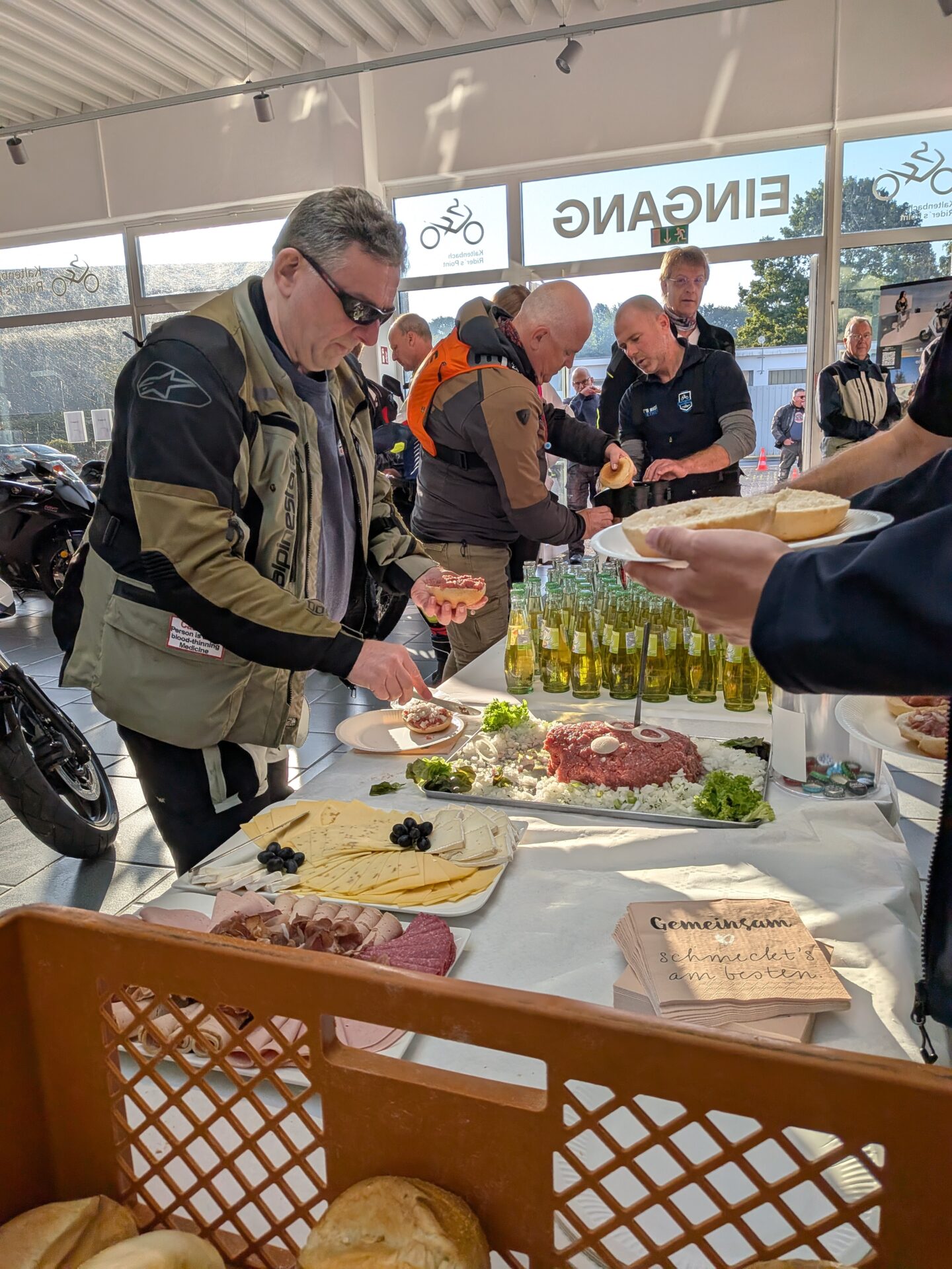 Am Ziel in Grafschaft-Ringen angekommen, warteten schon die ersten Highlights: leckere Stärkung am Imbisswagen, kalte Getränke und viele gute Gespräche. Der Showroom lud zum Entdecken ein, während zahlreiche Custom-Bikes echte Hingucker waren. Dazu gab es exklusiv für alle Teilnehmer 10 % Rabatt – eine Gelegenheit, die der ein oder andere gerne nutzte. Besonders spannend: die persönliche Führung von Wunderlich-Geschäftsführer Frank Hoffmann, der Einblicke in Werkstatt, Entwicklung, Prüfstand und Logistik gab.