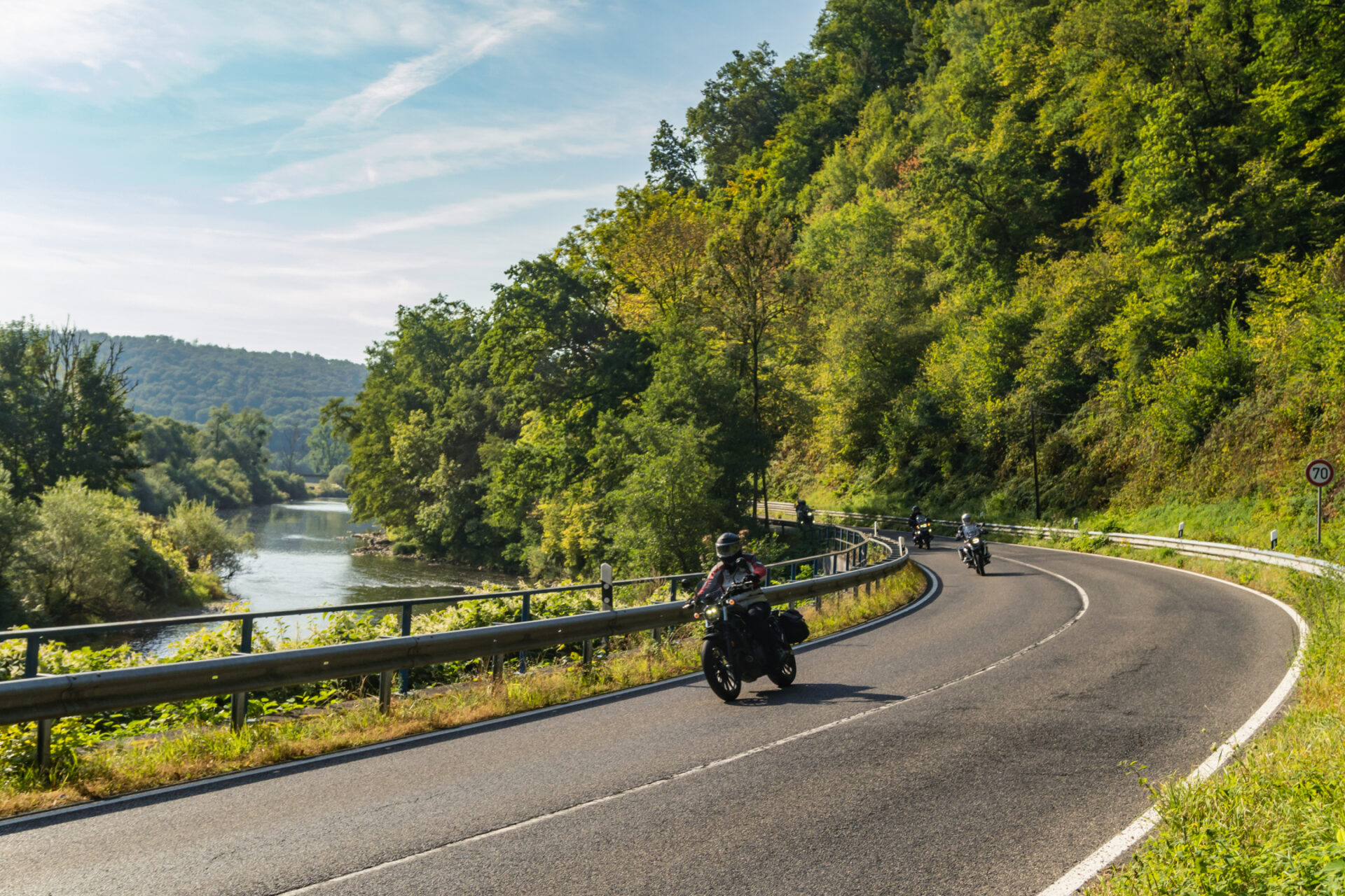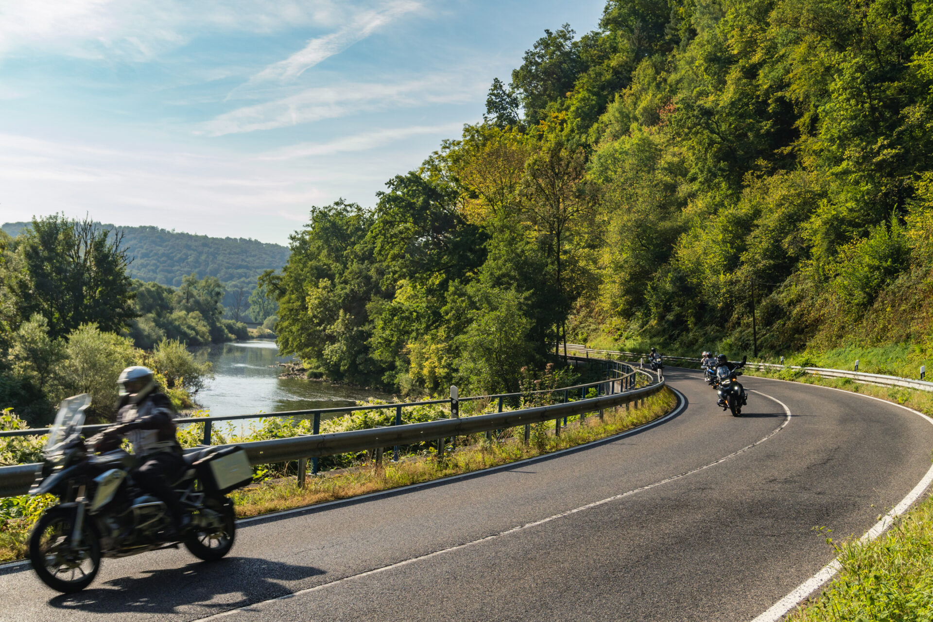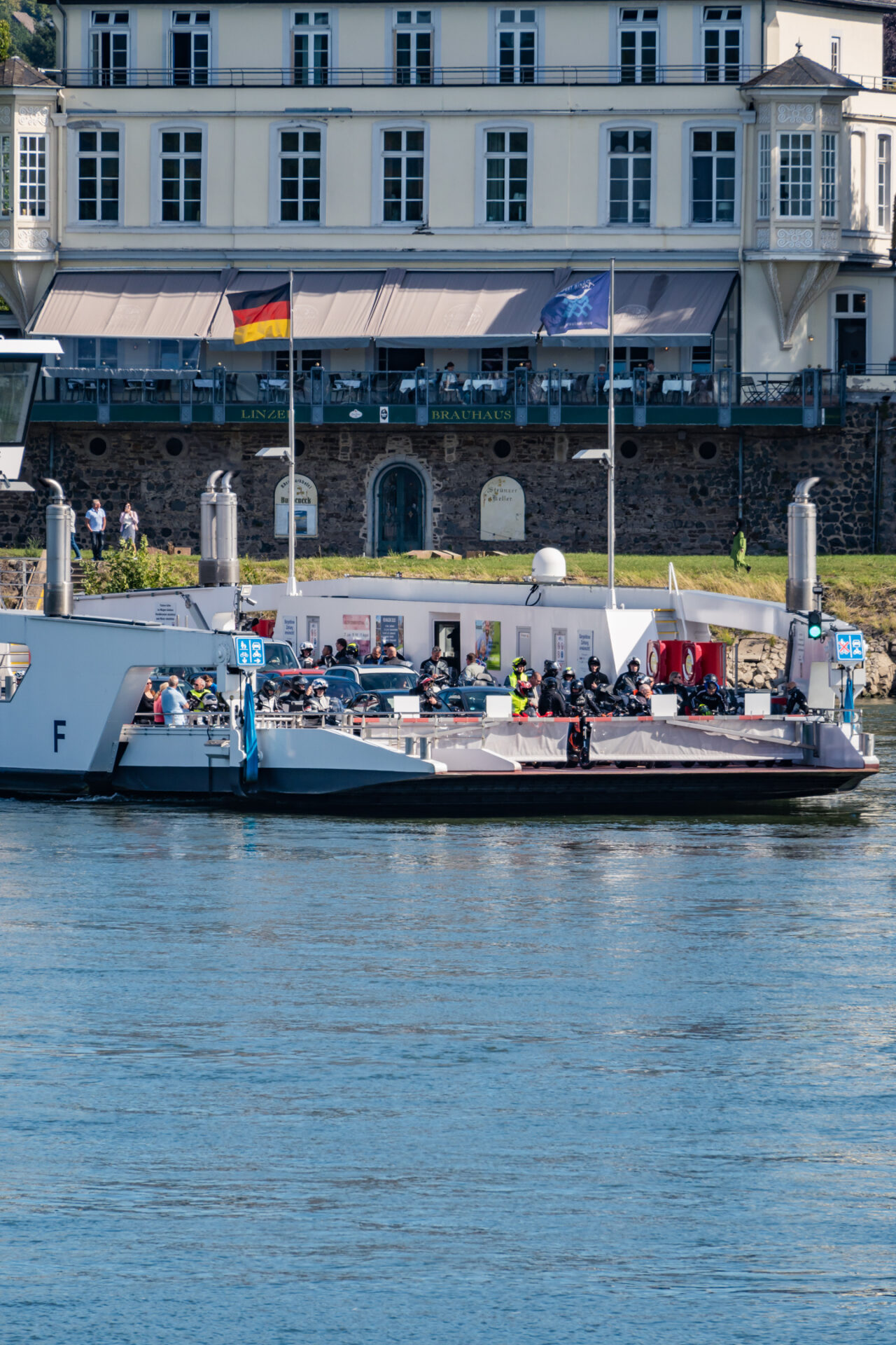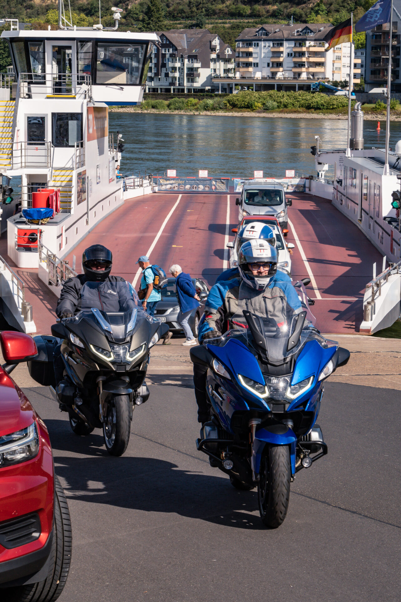 Von Overath, Werdohl und Wipperfürth aus ging es nach einem gemeinsamen Frühstück in geführten Gruppen auf die individuell gestalteten Routen. Jeder konnte sein Tempo wählen – von gemütlich bis sportlich. Über kurvige Landstraßen, durch eindrucksvolle Täler und entlang von Flüssen führte der Weg Richtung Rhein. Ein echtes Highlight: die Überfahrt mit der Fähre, bei der unsere große Biker-Gruppe alle Blicke auf sich zog.